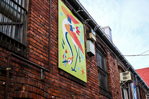 A vibrant pedestrian experience is essential to building a strong sense of community in any urban space. Paper Whale has transformed a two-block stretch of downtown alleyway into a lively cultural corridor. In collaboration with local businesses, we've installed colorful, dynamic artworks that link Bay St. Plaza to one of the city's most iconic sunset views. Featuring work from 12 independent artists, we proudly present: Sunset Alley. Many of the works are complete (you can visit anytime!), the remaining installations will be completed by the Fall of 2025.